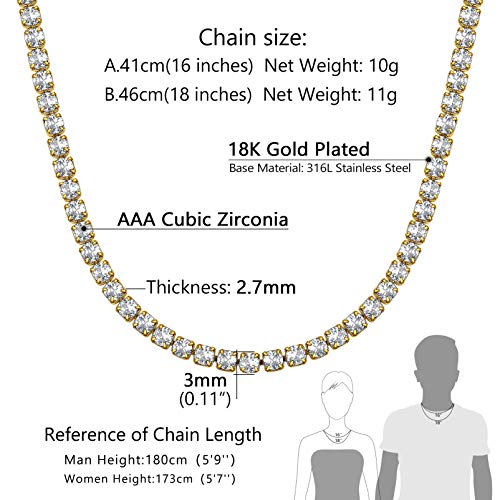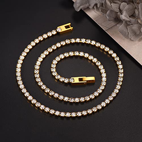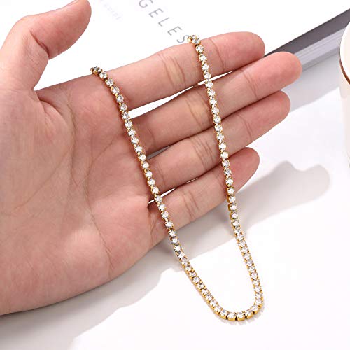 PROSTEEL - PROSTEEL Bling Tennis Necklace Chains Gold Necklaces Cubic Zirconia ICY Chain for Women 16 Inch
