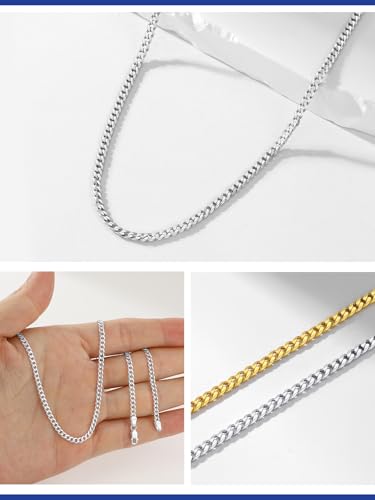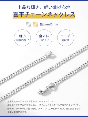 PROSTEEL - سلسلة للرجال والنساء من الفضة عيار 925، سلسلة فيجارو، لا تسبب الحساسية من بروستيل، عرض 3 ملم و5 ملم، طول من 35 إلى 70 سم، رفيعة (فضي / ذهبي)