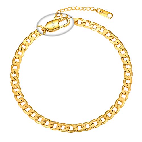 PROSTEEL - PROSTEEL Custom Anklet Chain Women Gold Plated Men Cuban Link Anklets, One Size, Stainless Steel