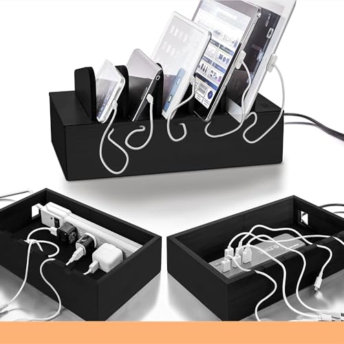 Prosumer's Choice - بروسمرز تشويس قاعدة شحن اجهزة من الخيزران الطبيعي لاجهزة متعددة | منظم قاعدة مكتب للجوال والتابلت وابل ايفون وايباد | مع فواصل قابلة للازالة - اسود
