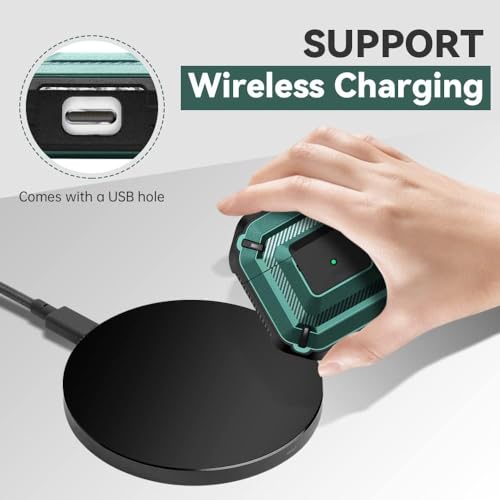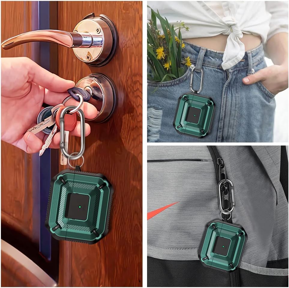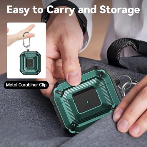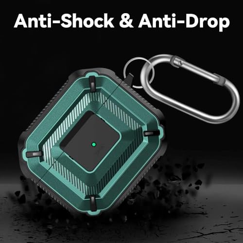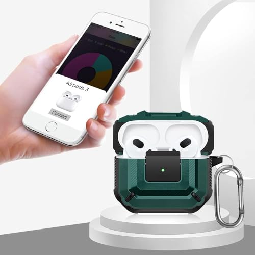 ELMO3EZZ - جراب حماية كامل صلب ومتين مع قفل أمان وحلقة مفاتيح وإمكانية رؤية مصباح ليد الأمامي، لسماعات ايربودز الجيل الثالث 2021، صدفة