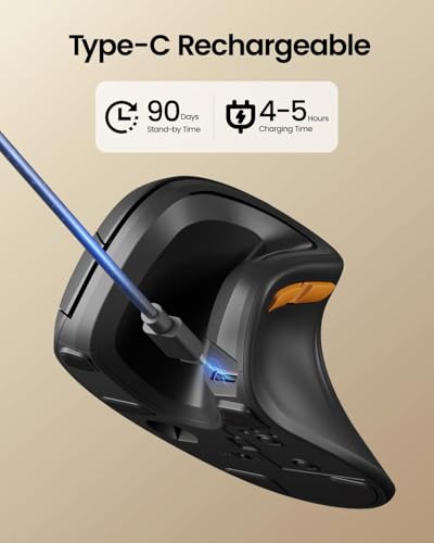 - Rechargeable Ergonomic Mouse: The Bluetooth Vertical Mouse has a built-in 500mAh Li-Ion battery that can be conveniently recharged using the included Type-C cable.