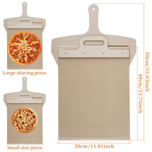 - [Suitable Size] This sliding pizza peel has an overall size of overall 30×58cm/11.8×22.8in and the spatula paddle is about 30×40cm/11.8×15.7in. Suitable size is perfect for making small personal pizzas or large shared pizzas. Convenient and easier to make pizza.