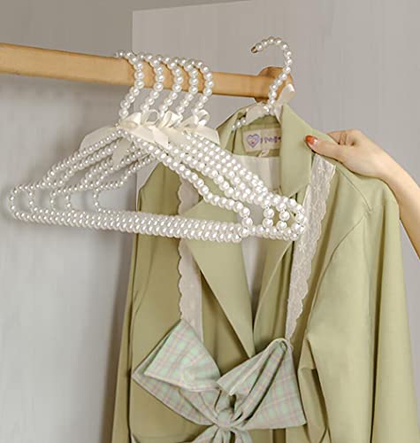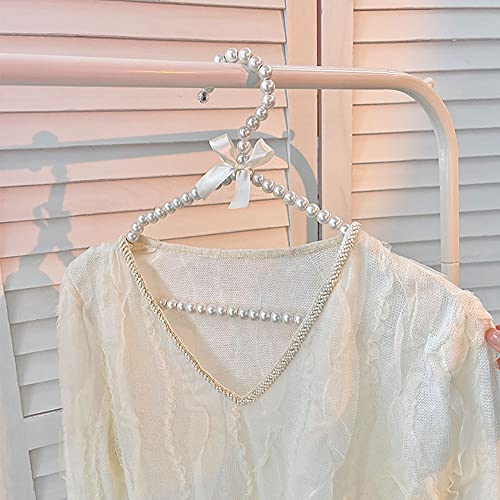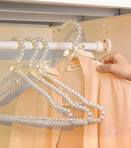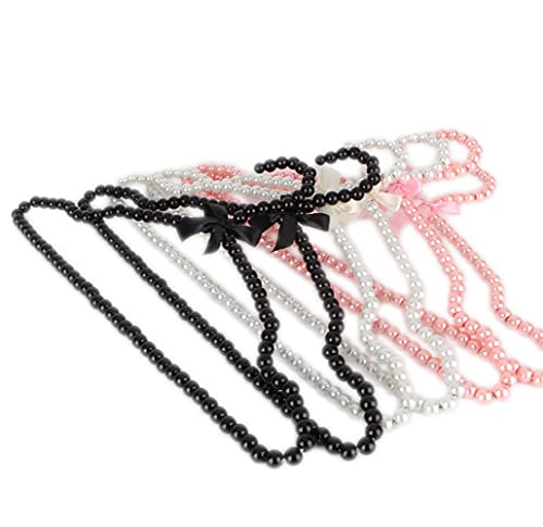 Psivika - شماعات بلاستيك بخرز اللؤلؤ على شكل فيونكة للملابس والفساتين والجواكيت ومنظم تخزين للبالطو من سيفيكا، عرض 40 سم - لون وردي، 10 قطع