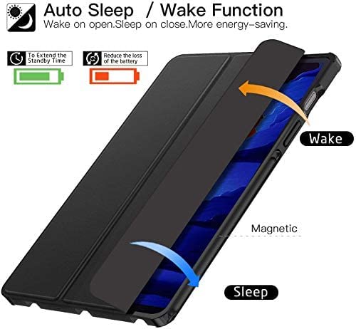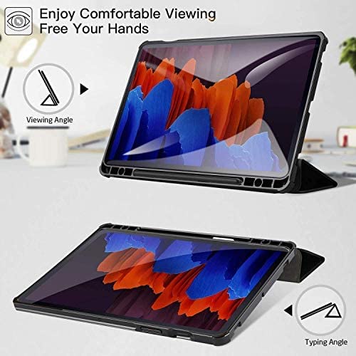 Generic - جراب مع مسند من البولي يوريثين خفيف الوزن مع حامل قلم اس (بخاصية ايقاف/ تشغيل) لموبايل سامسونج جالاكسي تاب S7 بلس، مقاس 12.4 بوصة، اسود