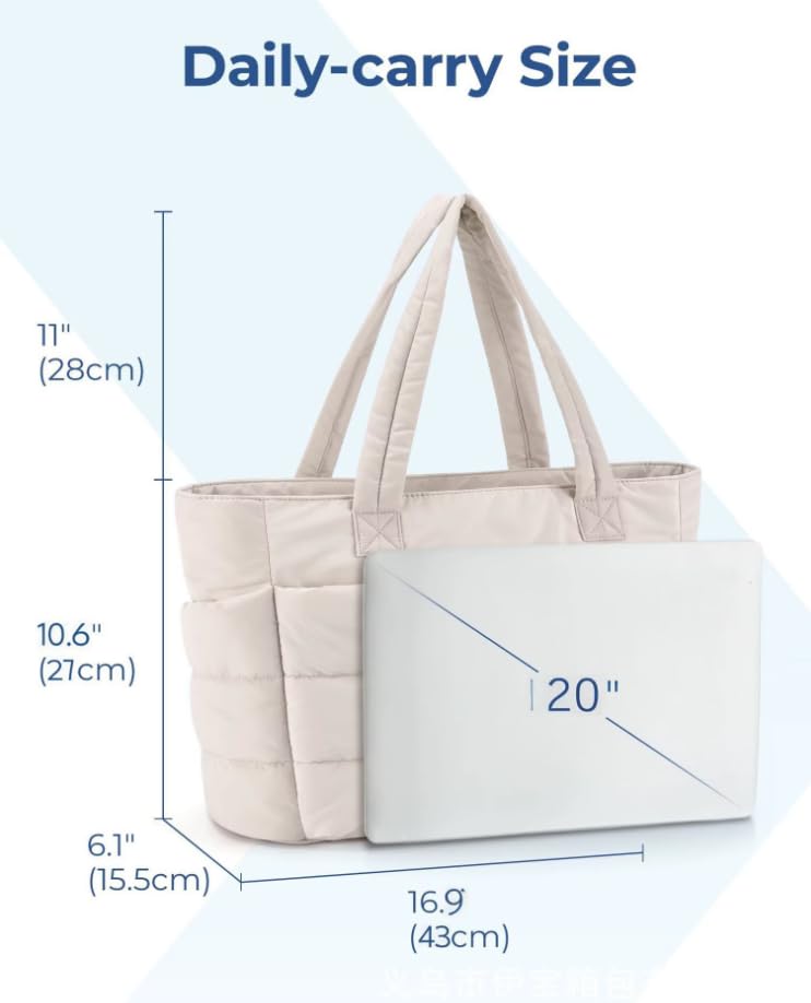 Wayfare - Puffer Tote Bag with Laptop Compartment, Quilted Work Bag with Organizers and Side Pockets for Uni and Office