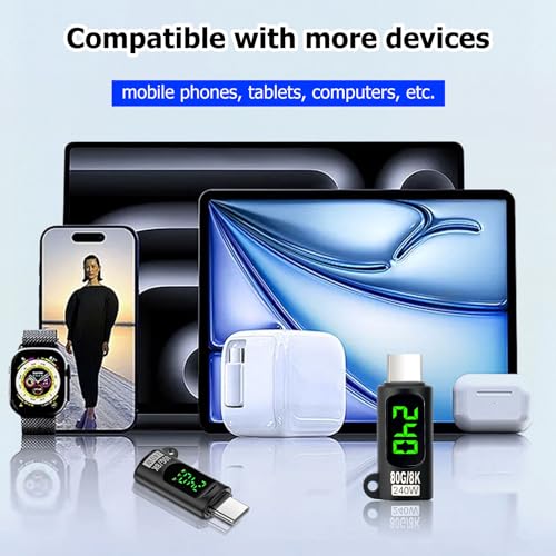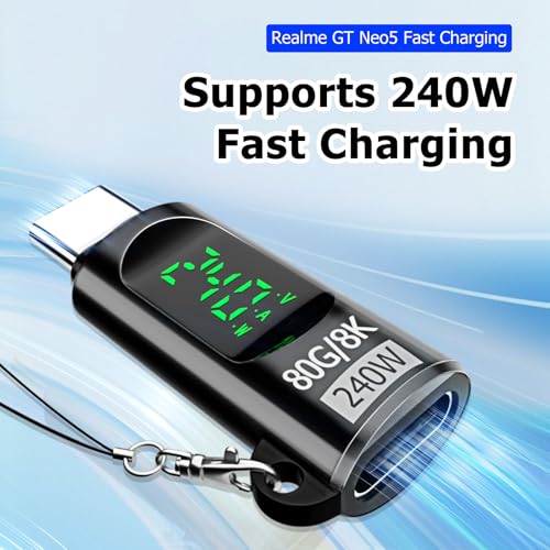 - مزود بشاشة V/A/W: هذا المحول من USB نوع C إلى USB بقدرة 240 وات يحتوي على شاشة ال اي دي تعرض الجهد والتيار والطاقة أثناء الشحن بشكل لحظي. بفضل التصميم البصري، يمكنك قراءة سرعة الشحن في الوقت الفعلي ومراقبة حالة الجهاز.