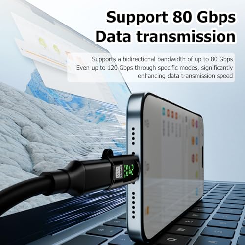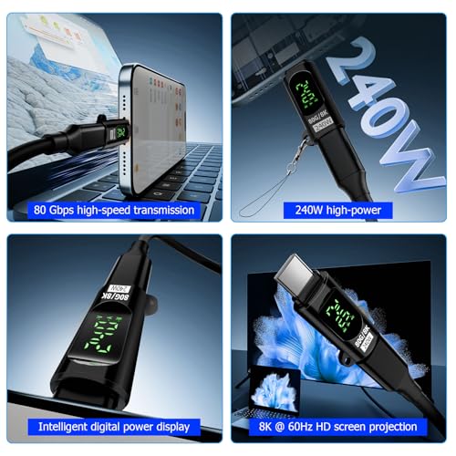 Puiseno - محول USB نوع C بسرعة 80 جيجابت في الثانية بقدرة 240 وات مع شاشة ال اي دي متوافق مع ثاندربولت 5 لأجهزة الكمبيوتر واللاب توب والفلاش ديسك والأقراص الصلبة والموبايلات من بويسينو
