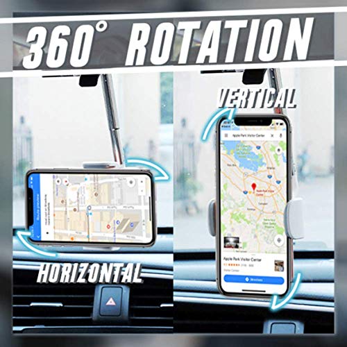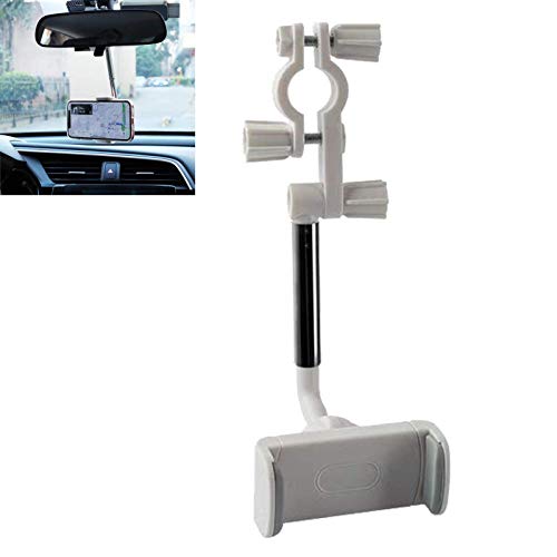 Pukdaswr - حامل موبايل بمراة الرؤية الخلفية بزاوية 360 درجة، حامل موبايل عالمي للسيارة، حامل موبايل بمراة الرؤية الخلفية للسيارة وحامل جي بي اس، للموبايلات المحمولة 4.0-6.1 بوصة (ابيض، قطعة واحدة)