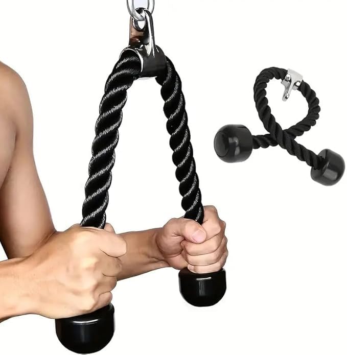 Generic - Pull Rope Tri-Sips Down Cable - 27 Inch Length Heavy Rope, Easy Grip and Non-Slip Cable Workout Accessory, Suitable for Professional Gyms, Home Gym Accessories (Black)