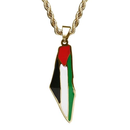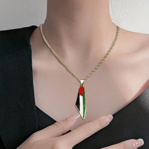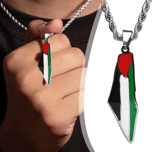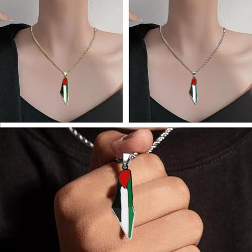 pulunto - سلسلة بدلاية على من الستانلس ستيل بتصميم خريطة فلسطين وعلم فلسطين من بولونتو، إكسسوار مناسب للنساء والرجال