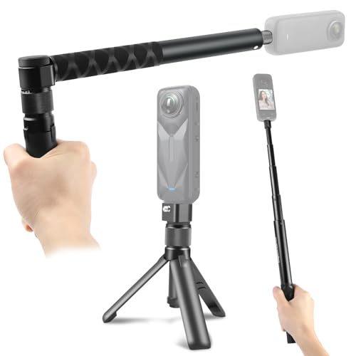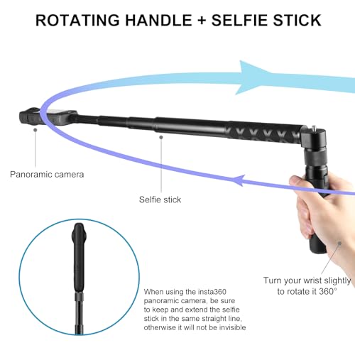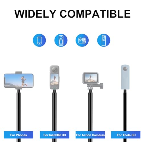 - توافق واسع: مجموعة عصا سيلفي مع حامل ثلاثي القوائم دوار، تناسب معظم كاميرات الأكشن، ومتوافقة مع انستا 360 X3 وX4 ونX2 وون X، كما تدعم الكاميرات الأخرى المزودة بفتحات مسمار 1/4 بوصة في أسفل الكاميرا أو قفص الكاميرا، مثل جو برو ودي جيه ايه وكاميرات الحركة الأخرى.