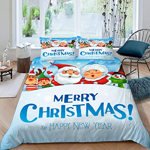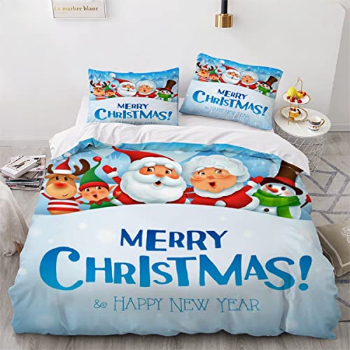 PUMAPU - Duvet Cover Double Size Christmas Tree 3D Printed Bedding Set with Zipper Closure Gift Santa Comforter Cover with 2 Pillowcases 3 Piece Soft Microfiber Quilt Cover for Adults Teenager