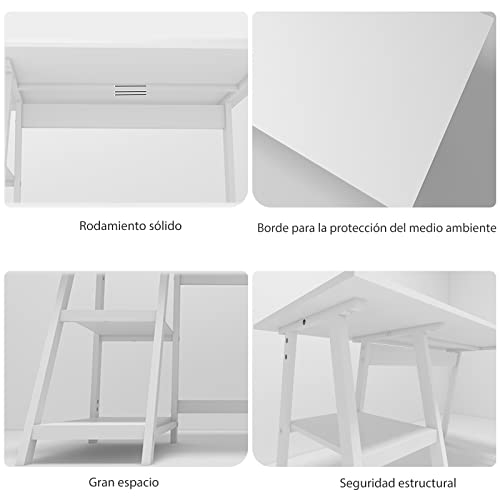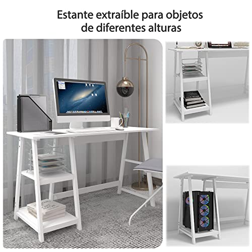 PUNCIA - PUNCIA 110 cm White Home Office Work Computer for Children Office with Storage 2 Layers Modern Simple Learning Laptop Style Home Office White