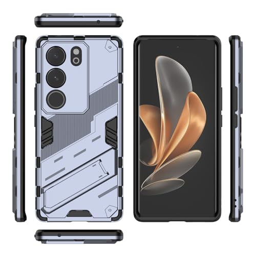 Generic - Punk Armor Phone Case Compatible With Vivo V29 5G / Pro - 2 in 1 PC + TPU Shockproof Case With Invisible Holder (Gray)