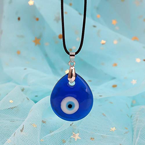 generic - Punk Turkish Blue Evil Eye Necklace Bracelet Wristband Layer Weave Leather Maple Leaf Bangle Ethnic Jewelry for Women Men, Metal, Agate