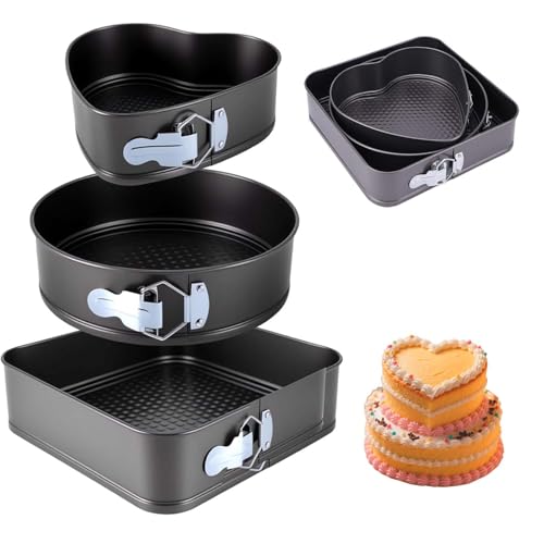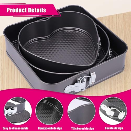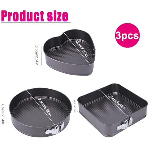 - 【Multiple Sizes】The heart-shaped/round/square springform cake tins comes with 3 molds of different sizes, the cake tins size is heart 20cm/round 22cm/square 24cm. This variety allows you to bake cakes of different sizes, adding versatility to your baking endeavours.The baking bakeware set is an ideal choice for home bakers.