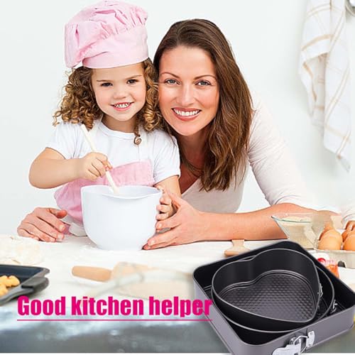 Punklong - 3PCS Heart-Shaped/Round/Square Cake Tin Sizes is 20/22/24cm, Cake Tins for Baking Removable Bottom QuickEven Release Latch Moulds Non Stick Baking Pan, for Birthday Cake Bread
