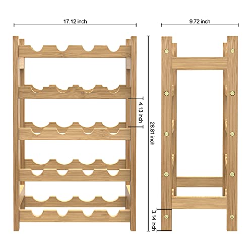 - 🍷 SPACE-SAVING DESIGN - With 17.12 * 9.72 * 28.81 inches overall dimensions, this freestanding wine rack provides 5-tier shelves for up to 20 bottles. Its inherent quality and detail-oriented crafts fits any room and décor, such as kitchen, living room, bar, or wine cellar.