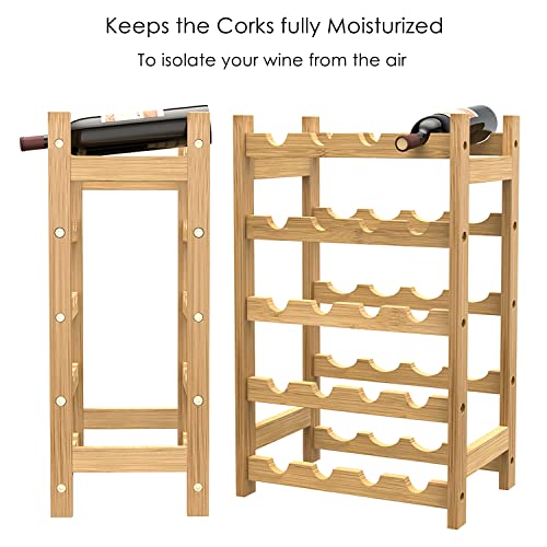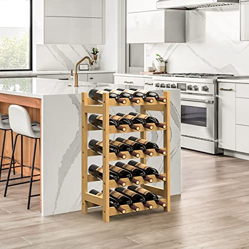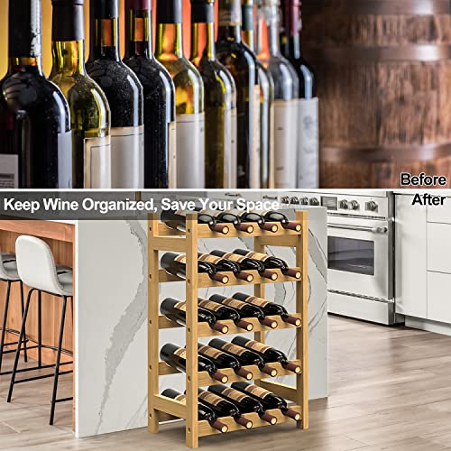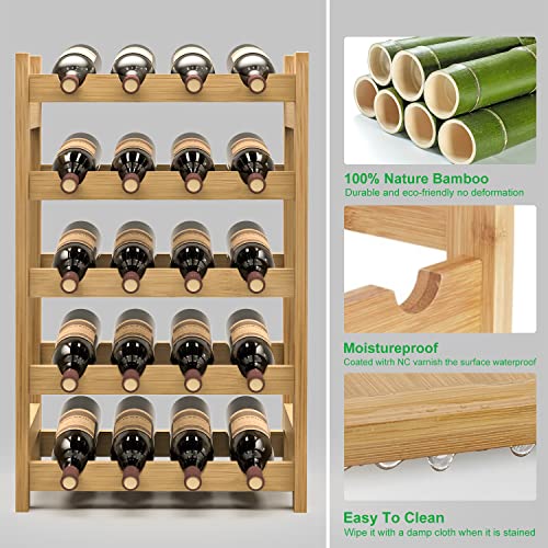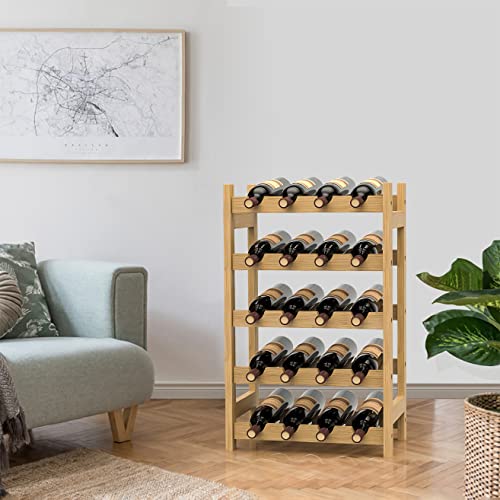 Purbambo - Purbambo 20-Bottle Wine Rack Freestanding Floor, 5-Tier Bamboo Wine Display Storage Shelf Bottles Organizer for Kitchen, Living Room, Bar, Wine Cellar
