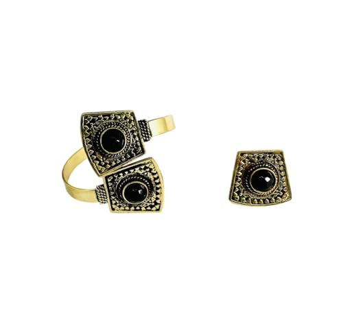 Insial, Brass Ring & Garnet & FreeSize Set