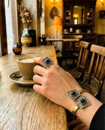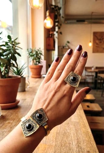 Generic - Pure Copper Free Size Bracelet and Ring Set with Agate Stones for Gift