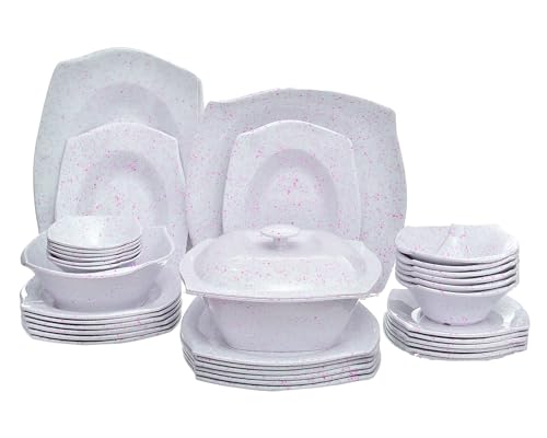 PURE - Pure melamine granite square dinner 38 pieces set, pink
