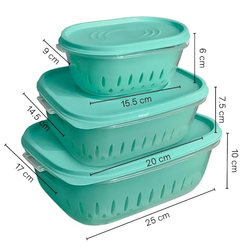 - **طقم يتألف من 3 علب للثلاجة:** يوفر هذا العدد المناسب من العلب مساحة كافية لتخزين وفصل أنواع مختلفة من الخضروات والفواكه.