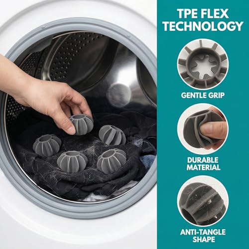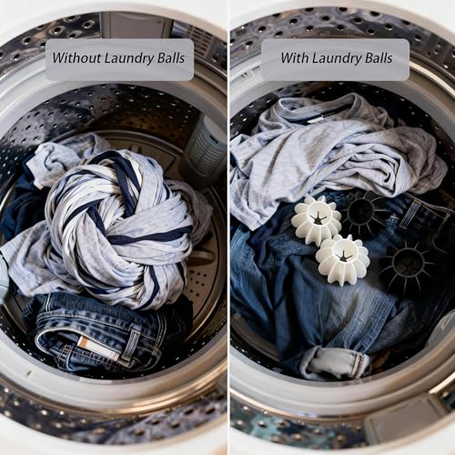 - 🥼👖👗🧦Works in All Machines & Handwashing Compatible with top-load, front-load, and HE washers—just toss in 2-3 balls per load. Also ideal for handwashing to boost scrubbing action without damaging fabrics.