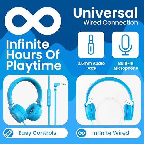 Puro Sound Labs - Puro Sound Labs PuroBasic Volume Limiting Wired Headphones for Kids, Foldable & Adjustable Headband w/Microphone, Compatible with Smartphones, Tablets and PC’s (Blue)