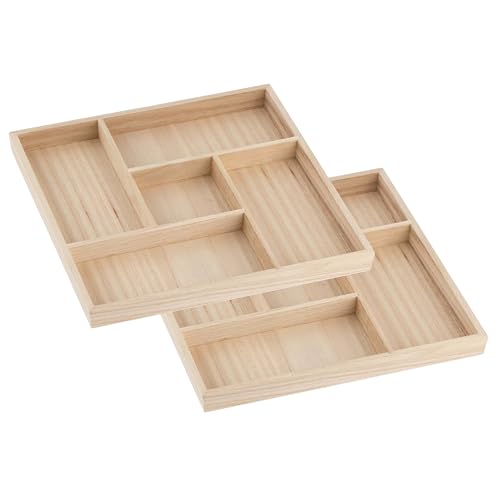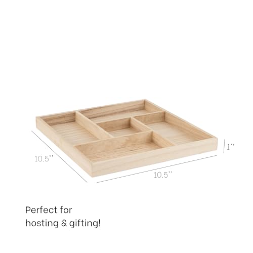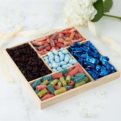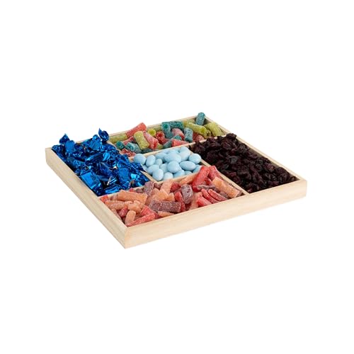 Purple Q Crafts - Purple Q Crafts Wooden Candy Platters - Set of 2, 10"x10" Bamboo Square Serving Trays for Parties, Events, and Home Decor - 5 Compartment Candy and Snack Organizer (2 Pack)