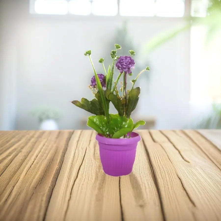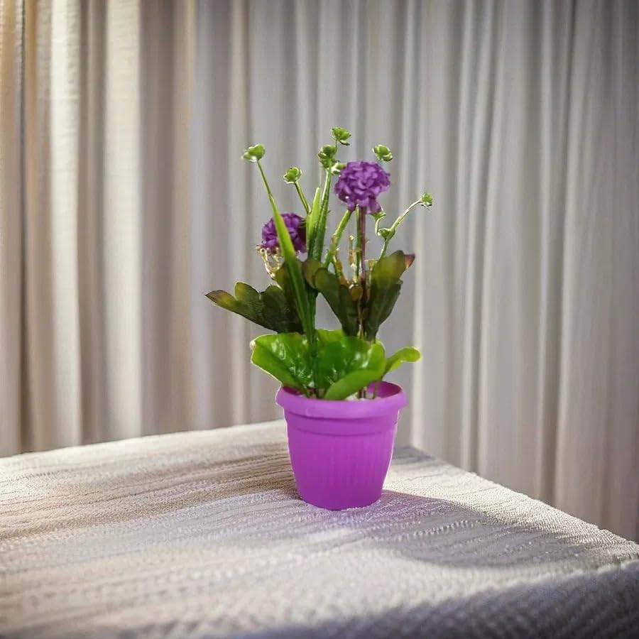 - نباتات صناعية واقعية: تتميز بأزهار بنفسجية وأوراق خضراء متعددة المستويات تبدو طبيعية وجذابة دون الحاجة للعناية أو الري