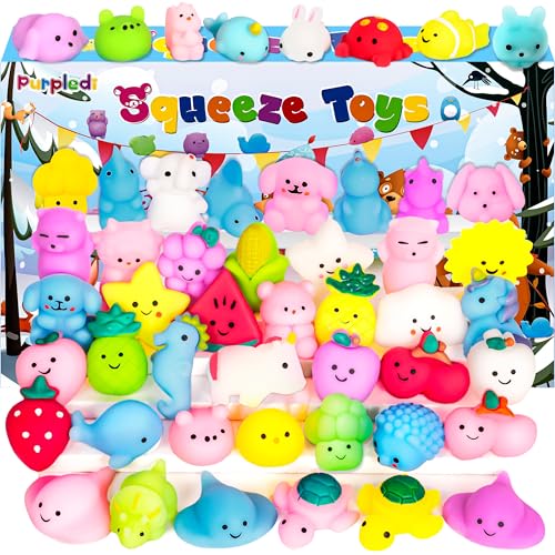 Purpledi - Pack of 50 Squishies Kawaii Soft Silicone Toy Anti Soft Squeeze Stress Relief Squishies Stress Toy with Various Animal Motifs, Party Bag Children's Birthday Party Favours