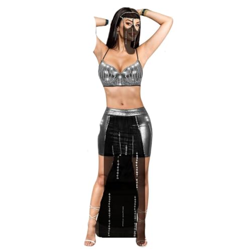 Generic - بدلة الرقص شرقي كبت Push Up Embroidery Handmed Leather Silver Shiny And Tulle Black