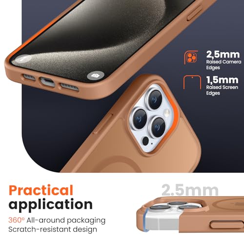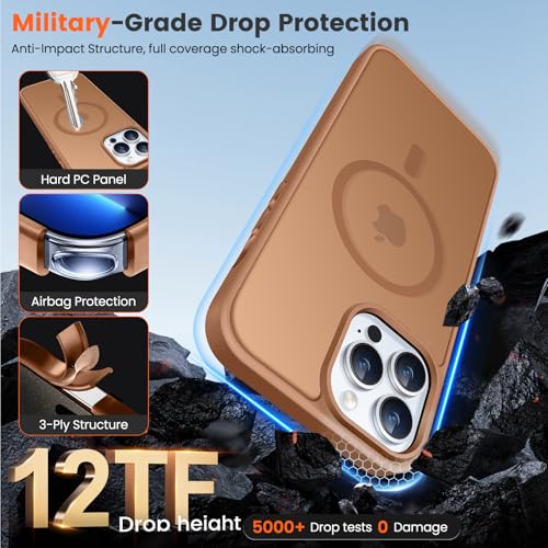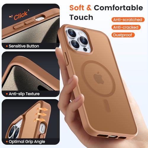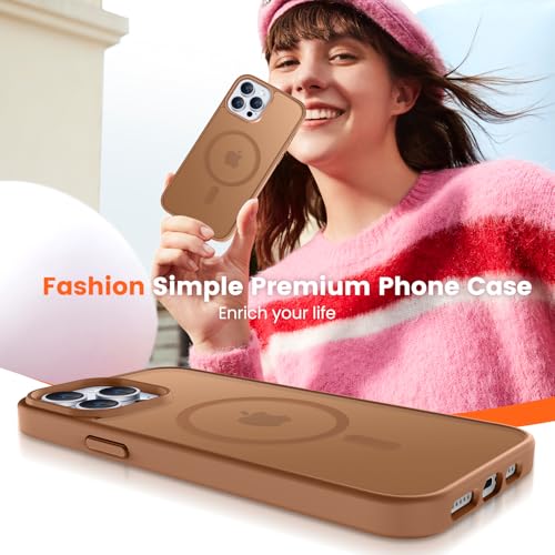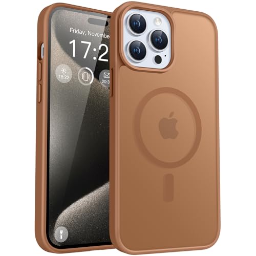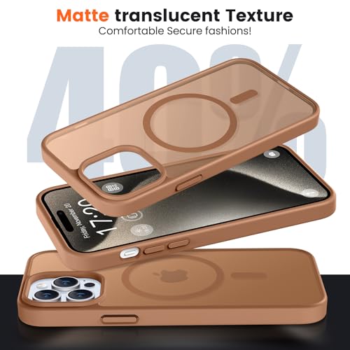 PuyaTeya - for iPhone 15 pro Phone Case, Compatible with Magnetic, Military Grade Drop Protection Translucent Matte Shockproof Anti-Scratch/Anti-Fingerprint Case for iPhone 15 pro (Brown)