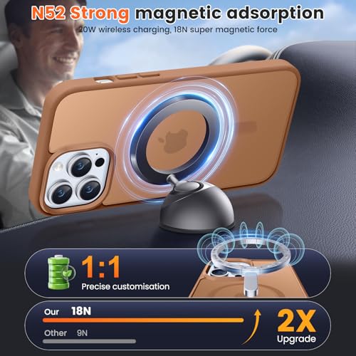 - Powerful Magnetic Attraction: The magnetic ring is made of 28 pieces of N52 magnets which are 100% aligned with magnet array and charging coil inside of the phone, with an 100% increase in magnetic strength compared to other magnetic cases. iPhone 15 pro Phone Case compatible with Mag-Safe wireless chargers, magnetic car mounts, and standard wireless chargers, ensuring a secure attachment during charging or driving for maximum convenience