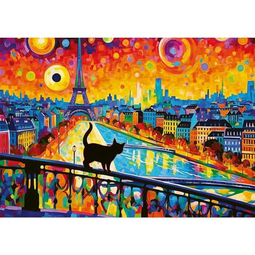 - Puzzle 1000 pieces, ideal for puzzle lovers, to create a picture with the size of 683 x 480 mm, a picture of Angelo Bonito - black cat in the background of coloured Paris