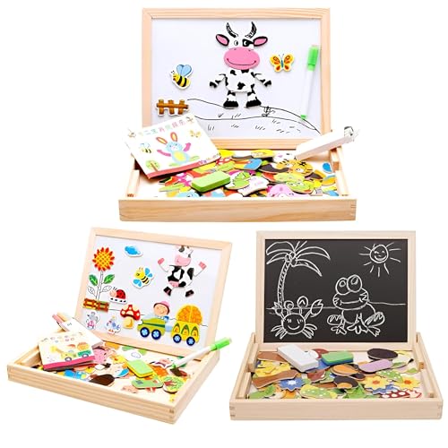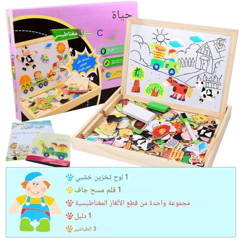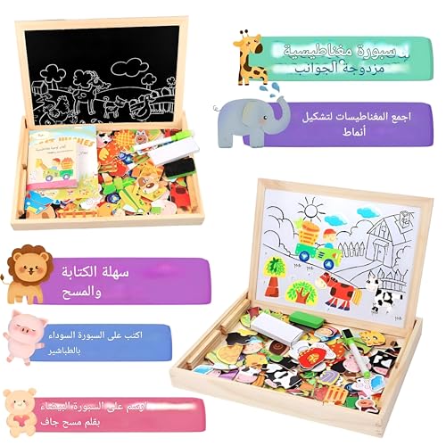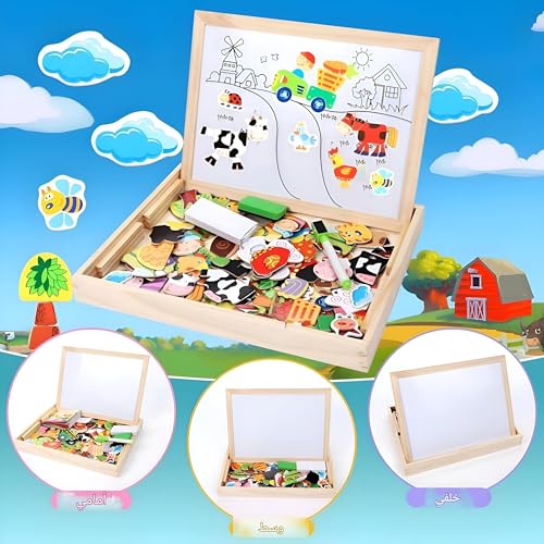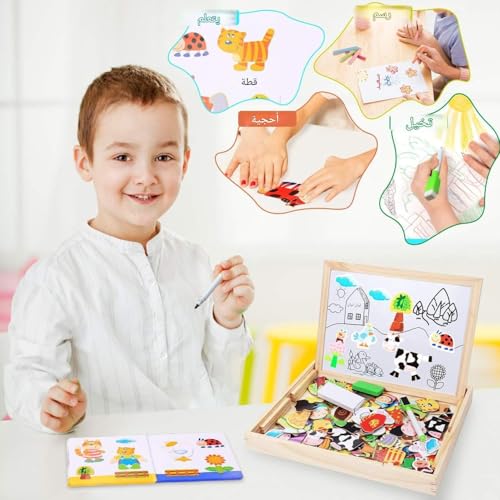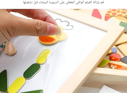 Generic - بازل - العاب تعليمية خشبية ابداعية للاطفال مع حامل مغناطيسي ولوح مزدوج الجوانب قابل للمسح الجاف للاولاد والبنات