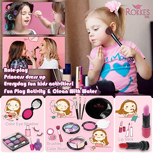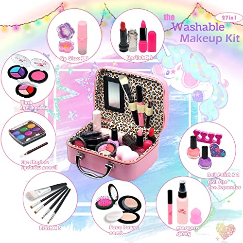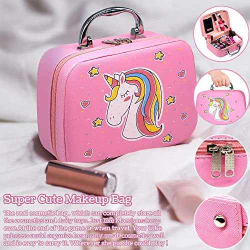 PYEBE - مجموعة مكياج حقيقية قابلة للغسيل الأطفال للبنات الصغيرات من بايبي، 33 قطعة، لعبة مكياج للعب التظاهري مع كيس مكياج رائع للبنات بعمر من 3 إلى 8 سنوات