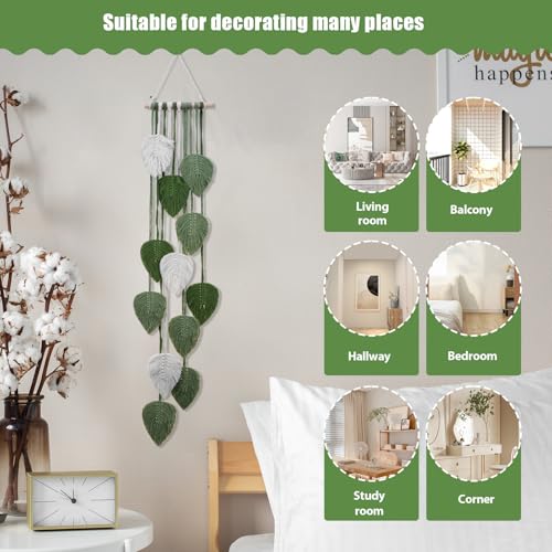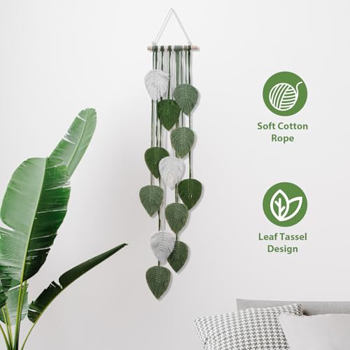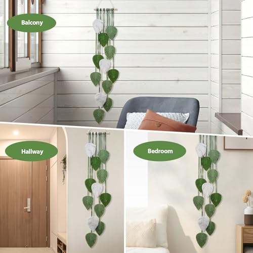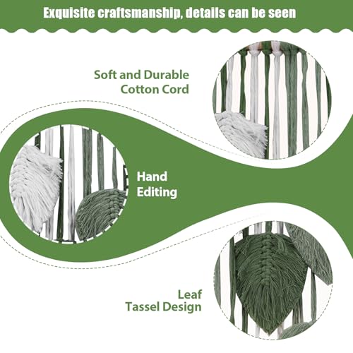 PZJFH - PZJFH Macrame Wall Hanging, Green Handmade Boho Tapestry with Leaves, Decorative Balcony Tapestry, Natural Wall Decoration for Living Room, Bedroom, Children's Room, 101 x 20 cm