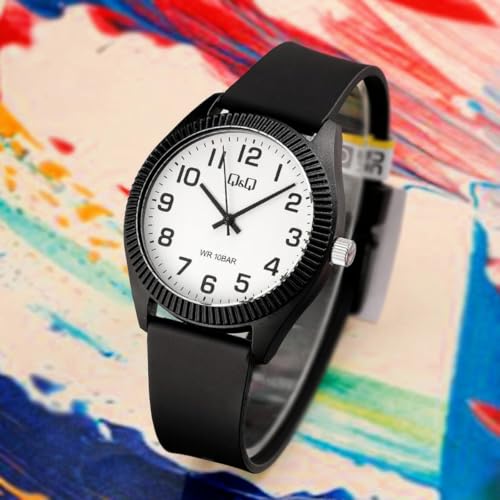 Q&Q - Q&Q Black Resin Band & White Dial Watch For Men - V12A-010VY