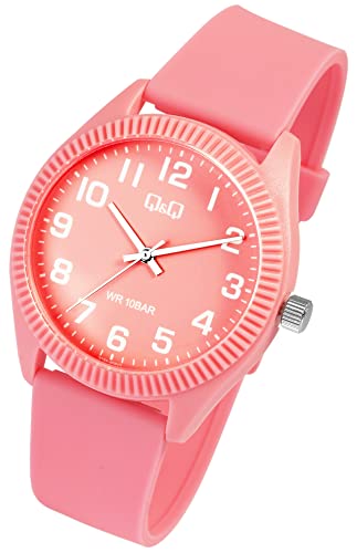 Q&Q - Q&Q ساعة انالوج بسوار راتنج بينك للنساء V12A 003VY بمينا وردي