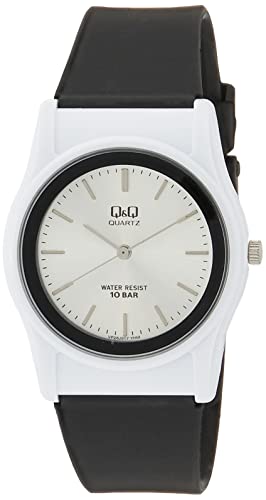 Q&Q - ساعة انالوج بعقارب للرجال من كيو اند مينا بلون فضي سوار اسود ملون