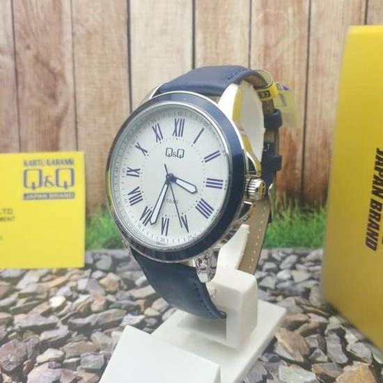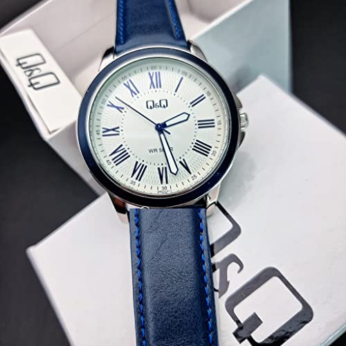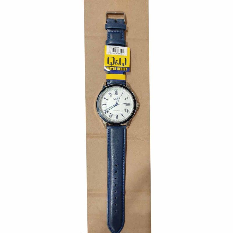 Q&Q - ساعة انالوج بعقارب بهيكل جلد للرجال من كيو اند موديل QB22J317Y أزرق