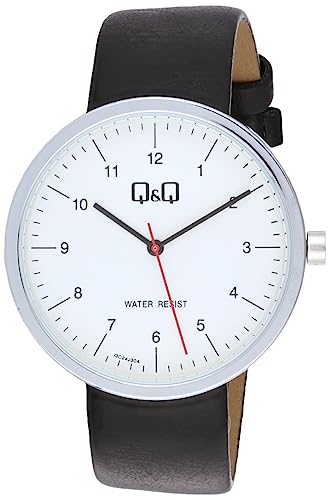 Q&Q - Q&Q Watch for Women, Quartz Movement, Analog Display, Black Leather Strap-QC24J304