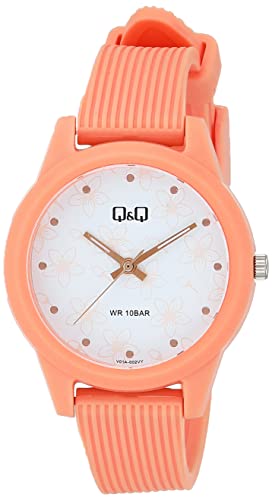 Q&Q - Q&Q Watch for Women, Quartz Movement, Analog Display, Orange Resin Strap-V01A-002VY