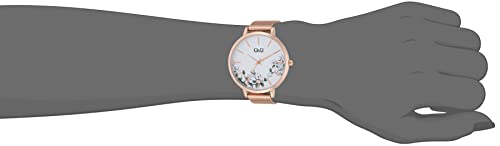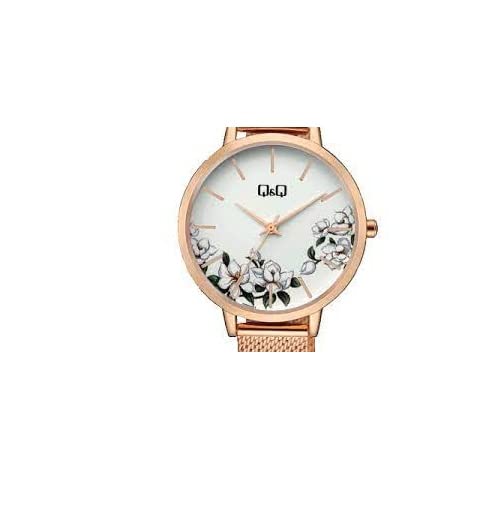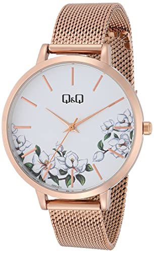 Q&Q - ساعة بسوار ستانلس ستيل بتصميم شبكي للنساء من كيو اند - QZ67J011Y انالوج بمينا أبيض