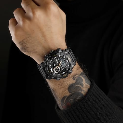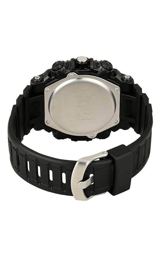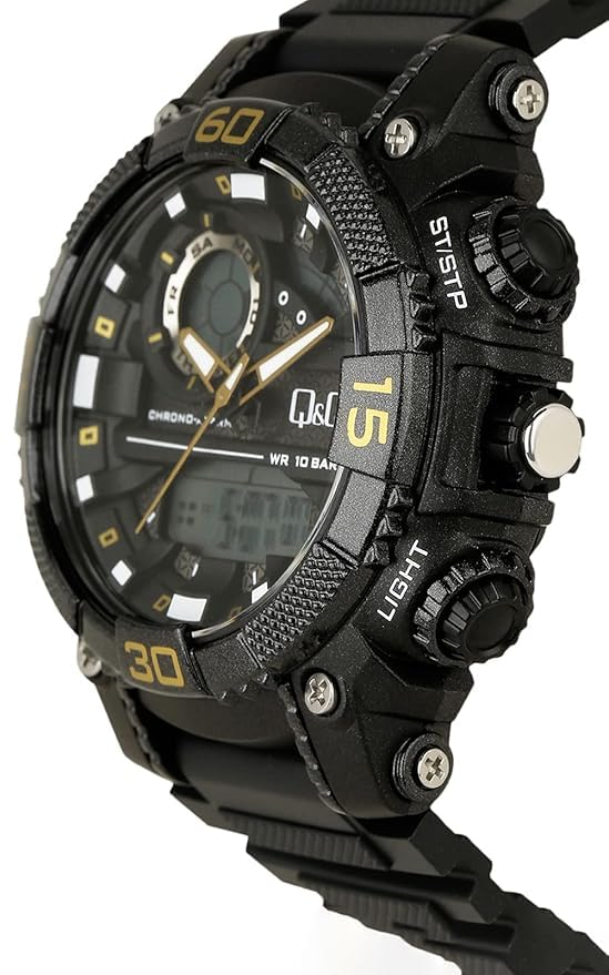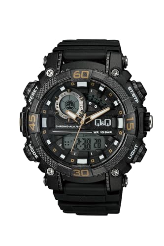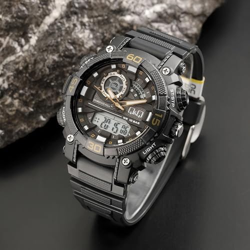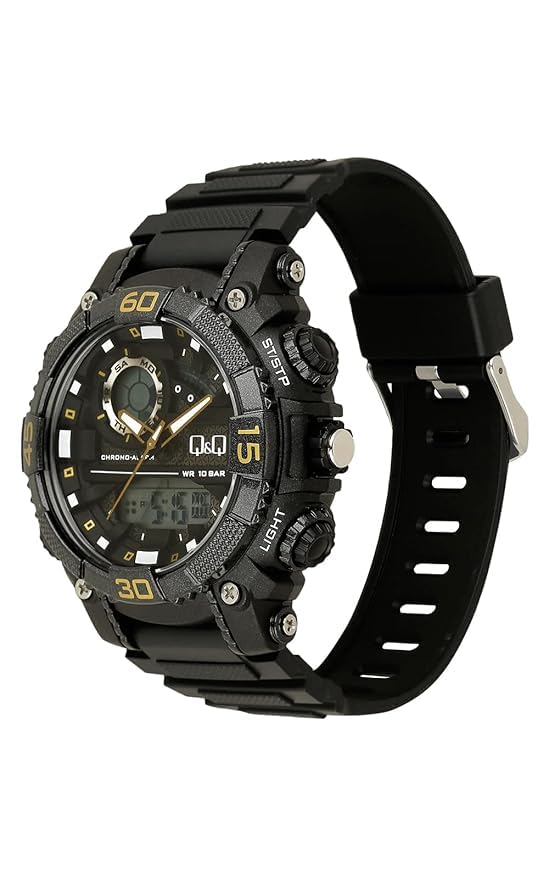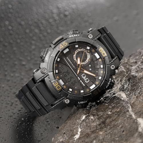 Q&Q - Q&Q ساعة انالوج بعقارب وديجيتال ومينا شفاف للرجال - GW87J013Y وسوار اسود