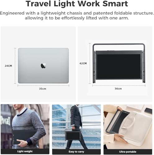 - تصميم قابل للطي ومحمول للسفر والعمل عن بعد: اصطحب محطة العمل الخاصة بك إلى أي مكان مع هذه الشاشة الثلاثية القابلة للطي للاب توب. خفيف الوزن وصغير الحجم ومحمي بإطار متين قابل للطي، يتناسب إعداد الشاشات المتعددة المحمول هذا بسهولة في حقيبة الظهر الخاصة بك - مثالي للبدو الرقميين والطلاب والمحترفين الذين يعملون أثناء التنقل.