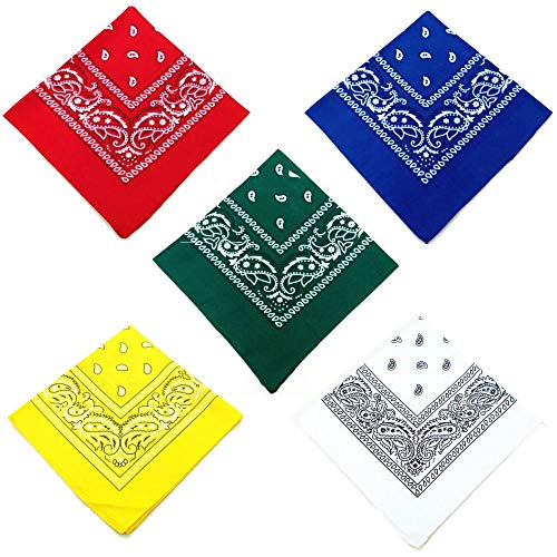 Q4 - Q4 Set of 5 Paisley Bandanas; Soft Poly Cotton Paisley Bandanas/Head Scarf/Wristband/Face Scarf/Headband for Men & Women. 5 Colors